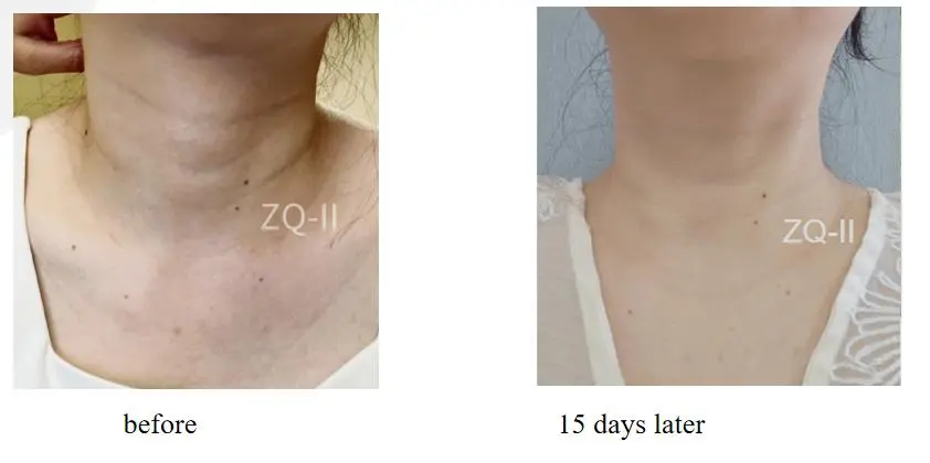 నెక్లైన్ కోసం ఖచ్చితమైన చికిత్స: ఆపరేటెడ్ ZQ-II PLLA పోషకాలు 1 బాటిల్ మరియు 15 రోజుల తరువాత నింపుతాయి