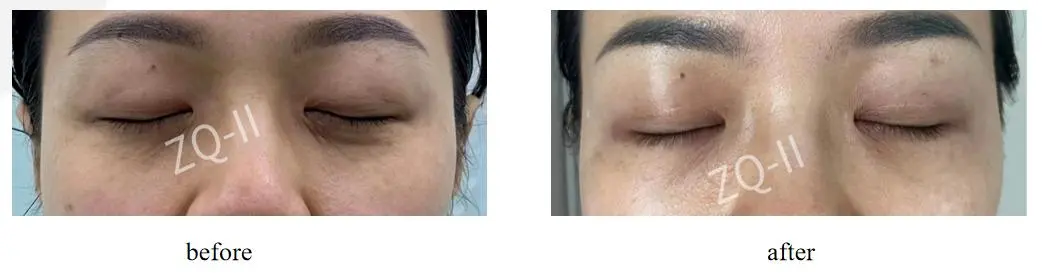 చికిత్స: ఆపరేటెడ్ ZQ-II PLLA పోషకాలు 6 నెలల్లో 3 సార్లు నింపుతాయి తరువాత: కళ్ళ చుట్టూ చక్కటి గీతలు మరియు చీకటి వృత్తాలు కనిపించబడతాయి